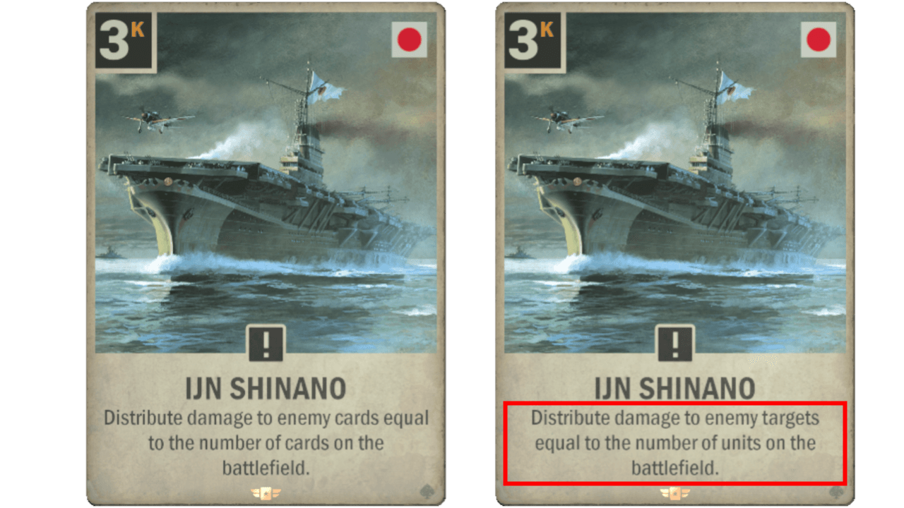 A formidable air carrier, the IJN SHINANO has cemented itself as a powerful card in Japanese aggro decks since its release with the Brothers in Arms expansion last summer. We aim to dial the power back a bit with this adjustment.