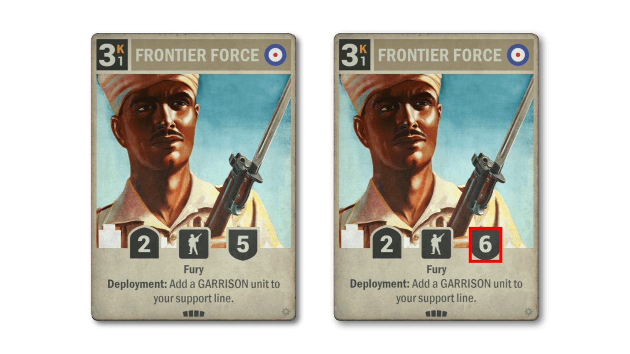 Frontier Force is one of these cards that was borderline playable, but never managed to force itself fully to the front. An extra defense may not seem like much, but survivability is a very important factor for fury units. At the very least it improves the Frontier’s Psyche.