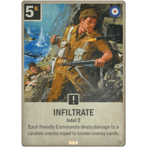 Intel 2. Each of your Commando units deals damage to a random enemy equal to known cards in the enemy hand.