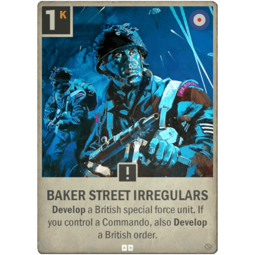 Develop a British Special Forces unit. If you control a commando, also develop a British Order