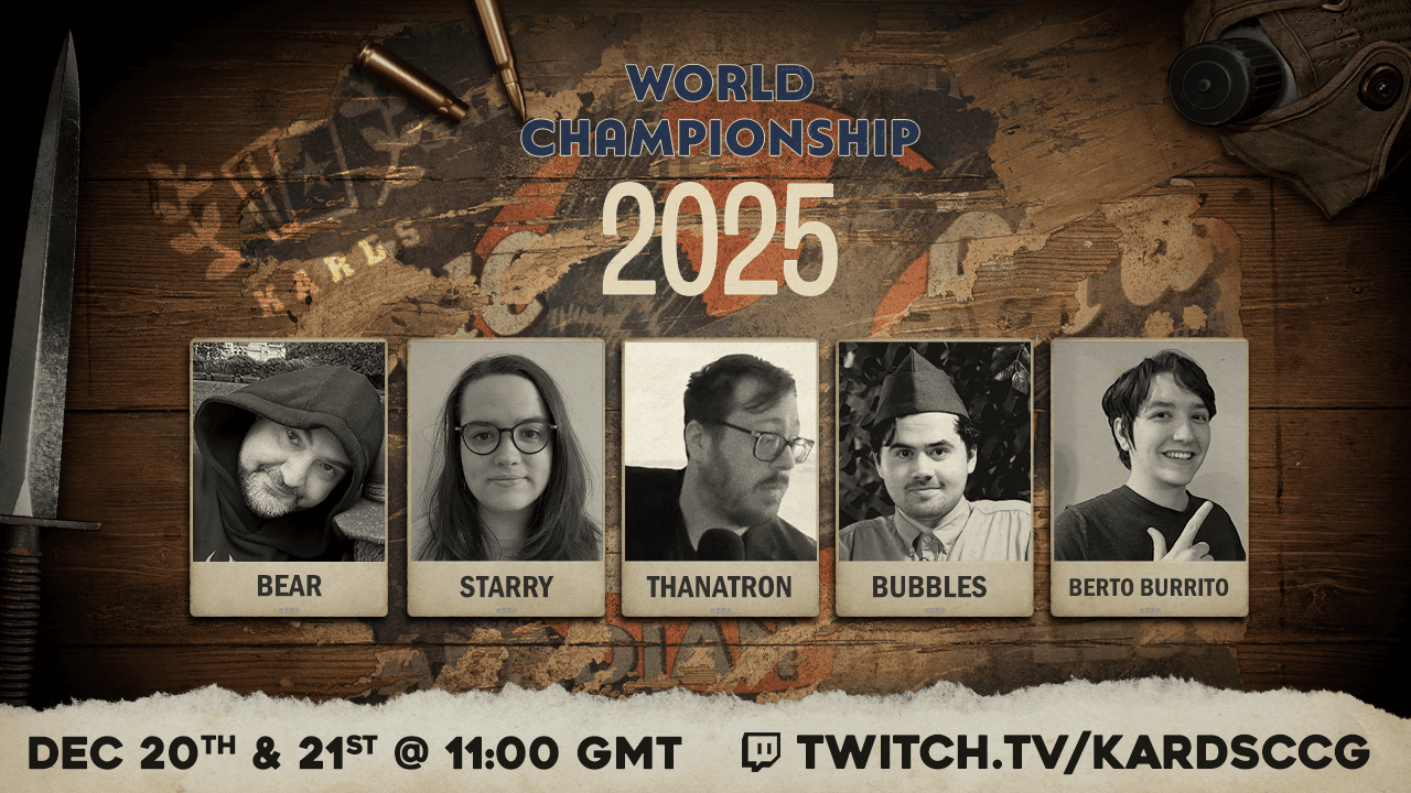 After a full year of Expansion Tournaments, ladder grinds, and the World Championship 2024, the ultimate showdown is about to begin: the KARDS 2025 World Championship, live on December 20 - 21 at 11:00 UTC.