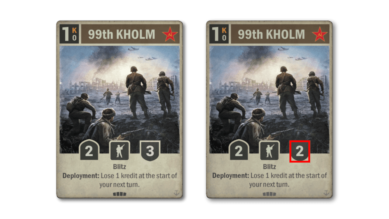This is another change specifically being made because this card is to become part of the permanent pool. It has never seen much play, but it does touch upon several strategies the Soviets have employed from time to time, namely artillery and self-damage. The more aggressive stats the unit now has certainly make it a more attractive proposition the next time these archetypes rear their heads.