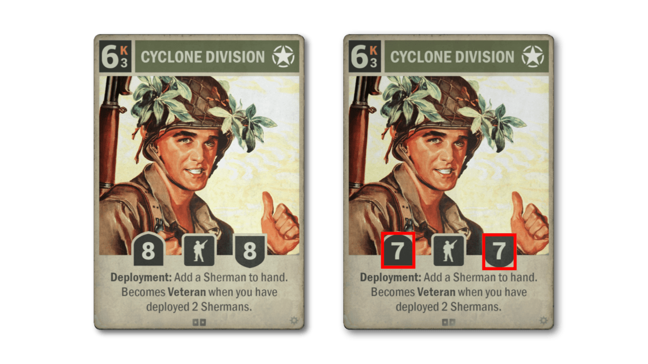 The Cyclone Division cycled out of meta relevance months ago, so what is it doing in the nerf section? Well, it comes down to what was mentioned above regarding the changes to the rotation system. Cards that are going to be a permanent part of the active pool cannot be too oppressive, and in the right environment and with the right support, the Cyclone can be quite the menace. So we are pre-emptively nerfing its stats to 7/7 (Veteran side as well).