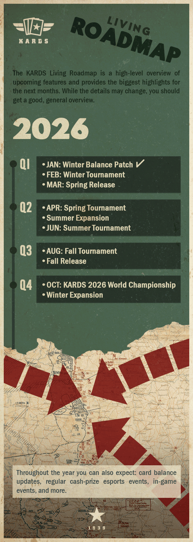 As we march into 2026, it’s time for a fresh briefing on what lies ahead for KARDS. This update to our Living Roadmap gives you a high-level look at the key operations we’re planning for the year.