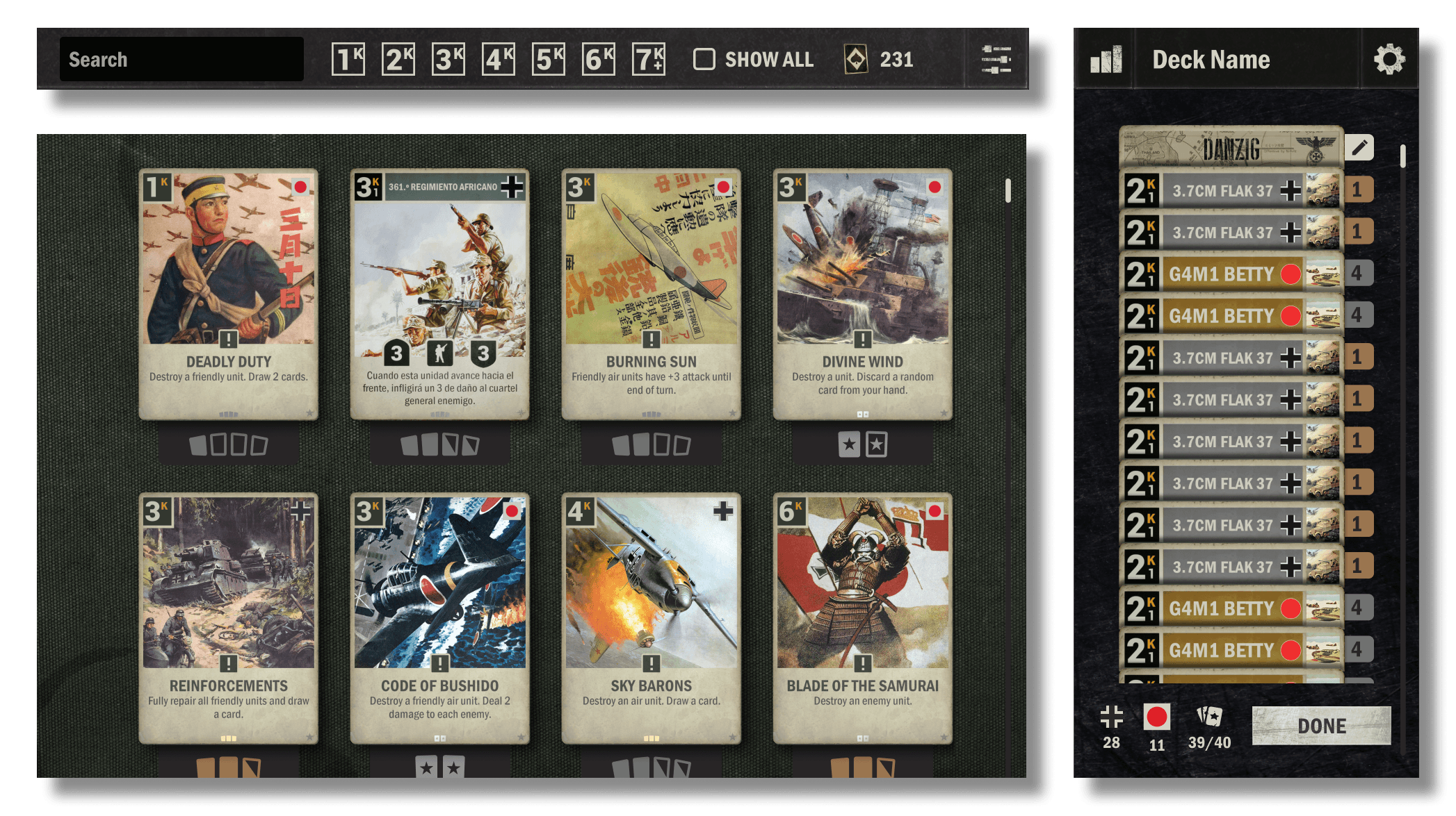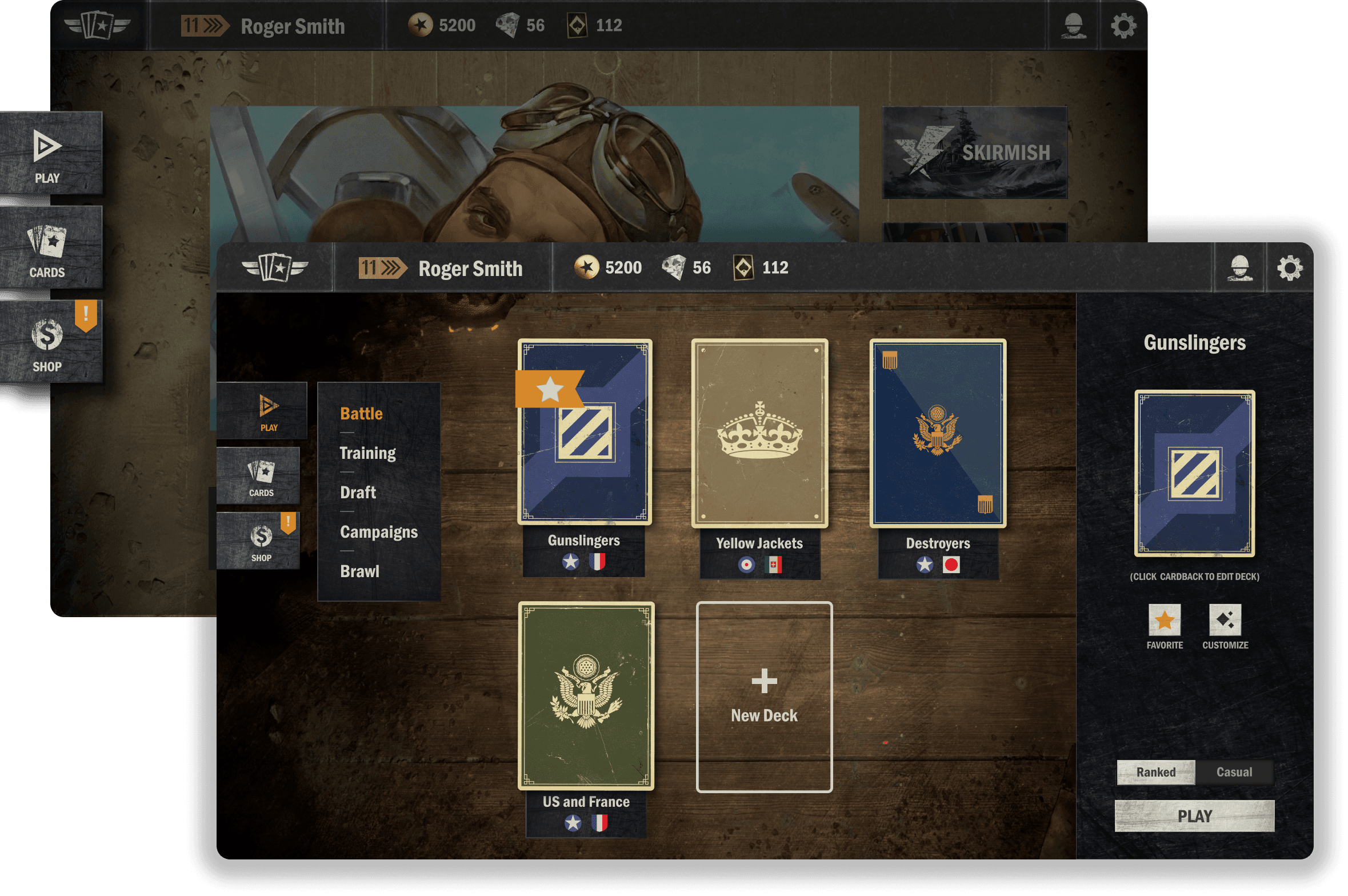 Na podstawie naszych własnych spostrzeżeń, opinii społeczności oraz ambicji rozwoju KARDS przez wiele lat, zauważyliśmy, że interfejs użytkownika KARDS mógłby zostać ulepszony. Tworząc mobilną wersję gry, dostrzegliśmy szansę na gruntowne przebudowanie interfejsu użytkownika, usprawnienie go i poprawienie ogólnego doświadczenia użytkownika. Nowy interfejs użytkownika będzie dostępny zarówno w wersji PC, jak i mobilnej gry, więc gracze będą mieli spójne doświadczenie niezależnie od urządzenia, na którym grają. Tutaj znajdziecie przegląd wszystkich zmian, których możecie teraz doświadczyć w swojej grze.