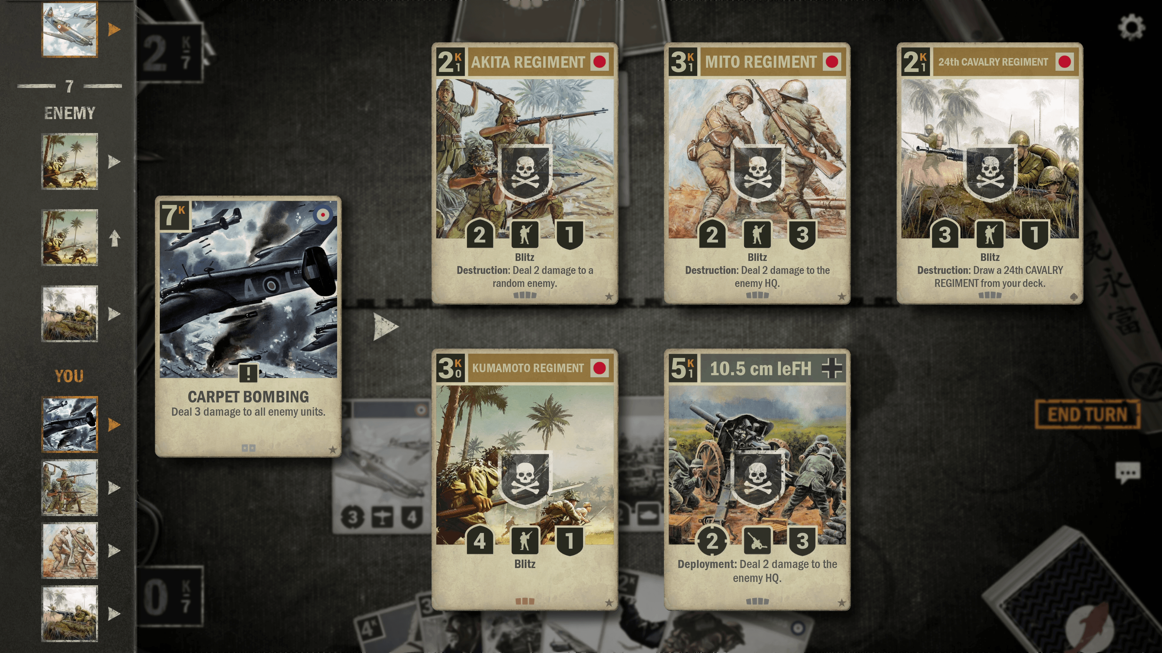 Sposób wyświetlania różnych wydarzeń w historii bitwy został całkowicie zmieniony. Wydarzenia są teraz pogrupowane indywidualnie, zapewniając znacznie bardziej przejrzysty wgląd w efekty każdego z nich. Na przykład, w poprzednim systemie, jeśli gracz zagrał NALOT DYWANOWY i jedna z objętych jednostek miała efekt zniszczenia, który wpływał na inne karty, wszystkie one były wyświetlane razem w jednej dużej grupie. Czasami prowadziło to do wyświetlenia bardzo dużej grupy w jednym wydarzeniu, co mogło być trudne do odczytania, szczególnie w środku bitwy. W nowym systemie są one rozdzielone - tzn. NALOT DYWANOWY i wszystkie karty, na które ma on wpływ, znajdują się w jednym wydarzeniu, z nowym osobnym wydarzeniem dla efektu zniszczenia i wszystkich kart, na które ma on wpływ. Znacznie poprawi to szybkość i łatwość, z jaką gracz może odczytać wszystko, co właśnie się wydarzyło, zwłaszcza gdy wiele efektów uruchamia się w reakcji łańcuchowej. Tak jak poprzednio, będziecie mogli najechać kursorem lub dotknąć wydarzenia, aby uzyskać więcej informacji o nim i jego skutkach.