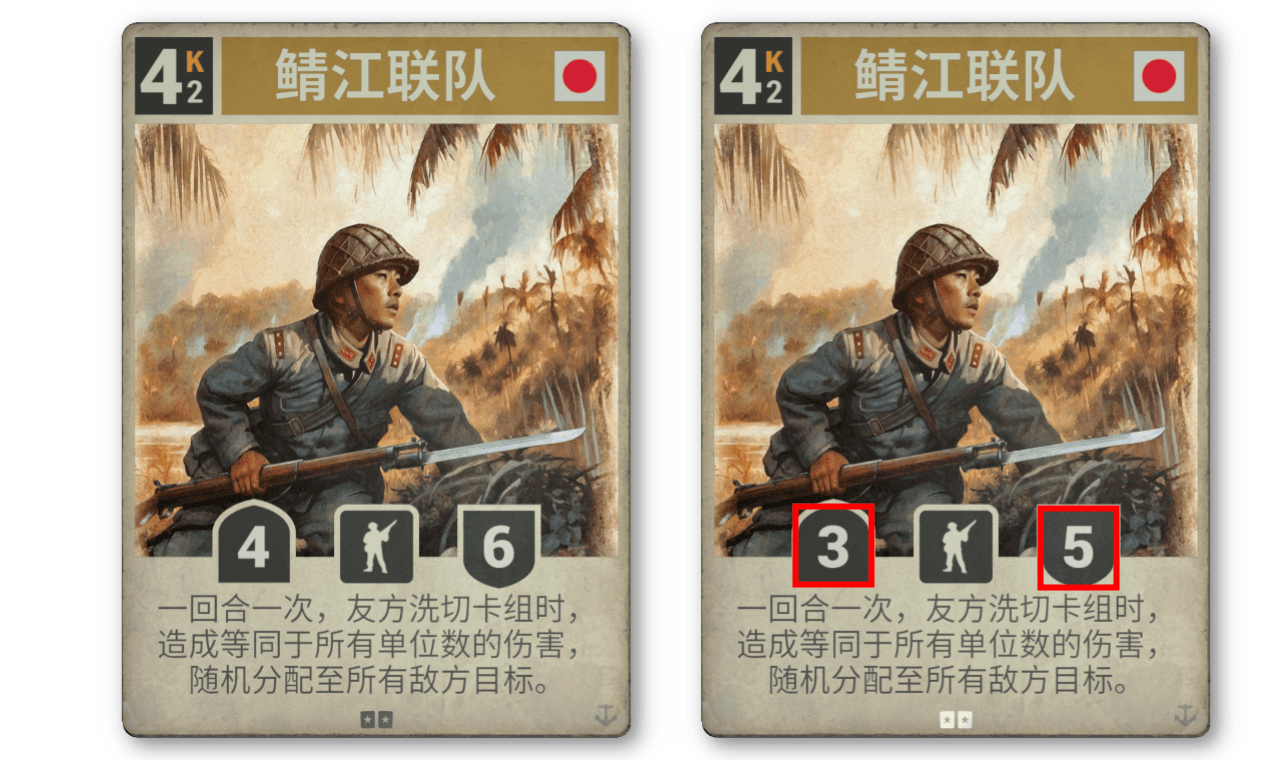 现在我们迎来了第二项洗切削弱。8 月补丁之后,日法洗切一步登天,事后看来,我们给得太多了。这套牌依旧很有趣,我们不想把它砍死。现在该单位不再能强化自身,即使场面顺风顺水,也更容易被处理。