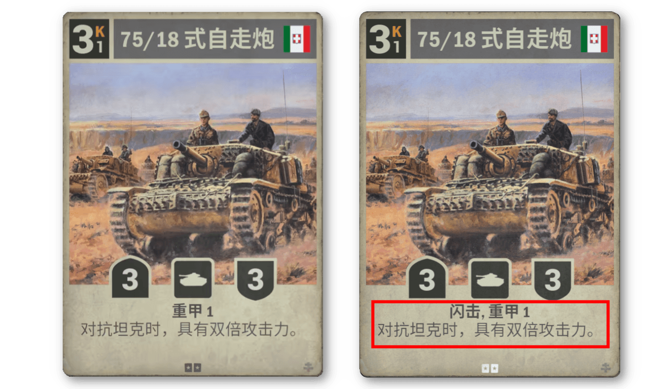 新:闪击,重甲 1。对抗坦克时,具有双倍攻击力。