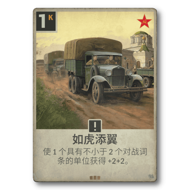 效果:使 1 个具有不小于 2 个对战词条的单位获得 +2+2。