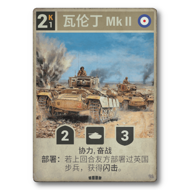 效果:部署:若上回合友方部署过英国步兵,获得闪击。