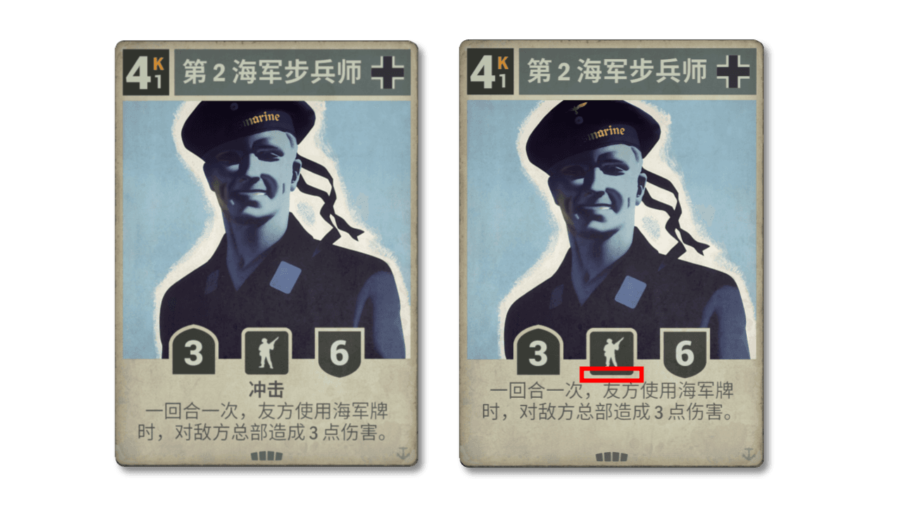 新:一回合一次,友方使用海军牌时,对敌方总部造成 3 点伤害。
