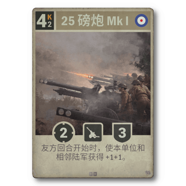 效果:友方回合开始时,使本单位和相邻陆军获得 +1+1。