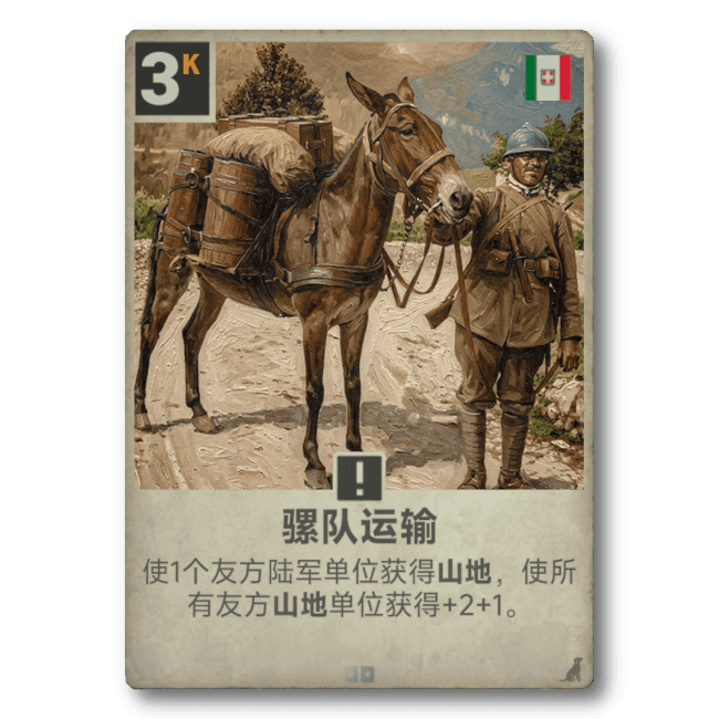 在每一个战场,动物都以多种方式与士兵并肩作战 - 它们既是吉祥物、信使和救援动物,同时也是希望与生机的象征,更是在严酷环境中始终坚守的忠实伙伴。野性伙伴将以这些非凡故事为样板,赋予其经典 KARDS 风格,将它们带入战场。